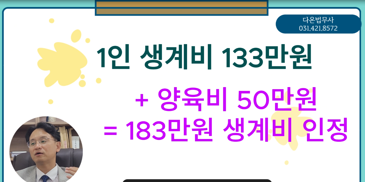 생계비를 본인 한 명 기준으로 인정받고 변제금을 산정할 경우, 법원에 변제금을 내고 전 배우자에게 양육비를 지급해야 하므로 정상적인 생활이 어렵죠.
